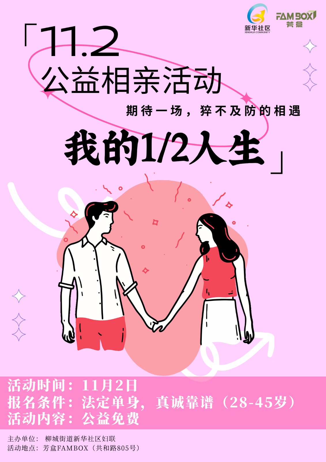 为积极响应国家关于“加强家庭家教家风建设”及“完善社区公共服务体系”的号召,推动和谐家庭、幸福社区建设。成都市温江区妇联和成都市温江区新华社区在温江区芳盒(FAMBOX)共同发起面向单身群体的“我的1/2人生”主题公益相亲联谊活动。