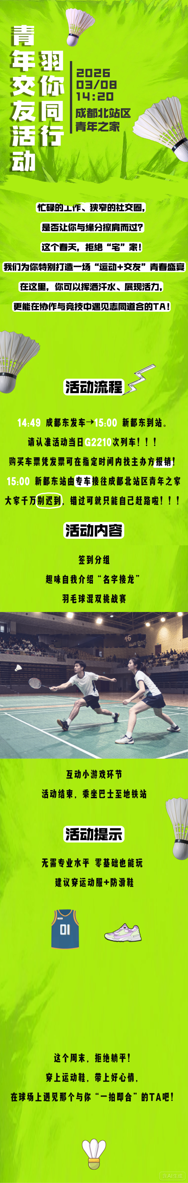 !!!请携带羽毛球拍参加活动!!!