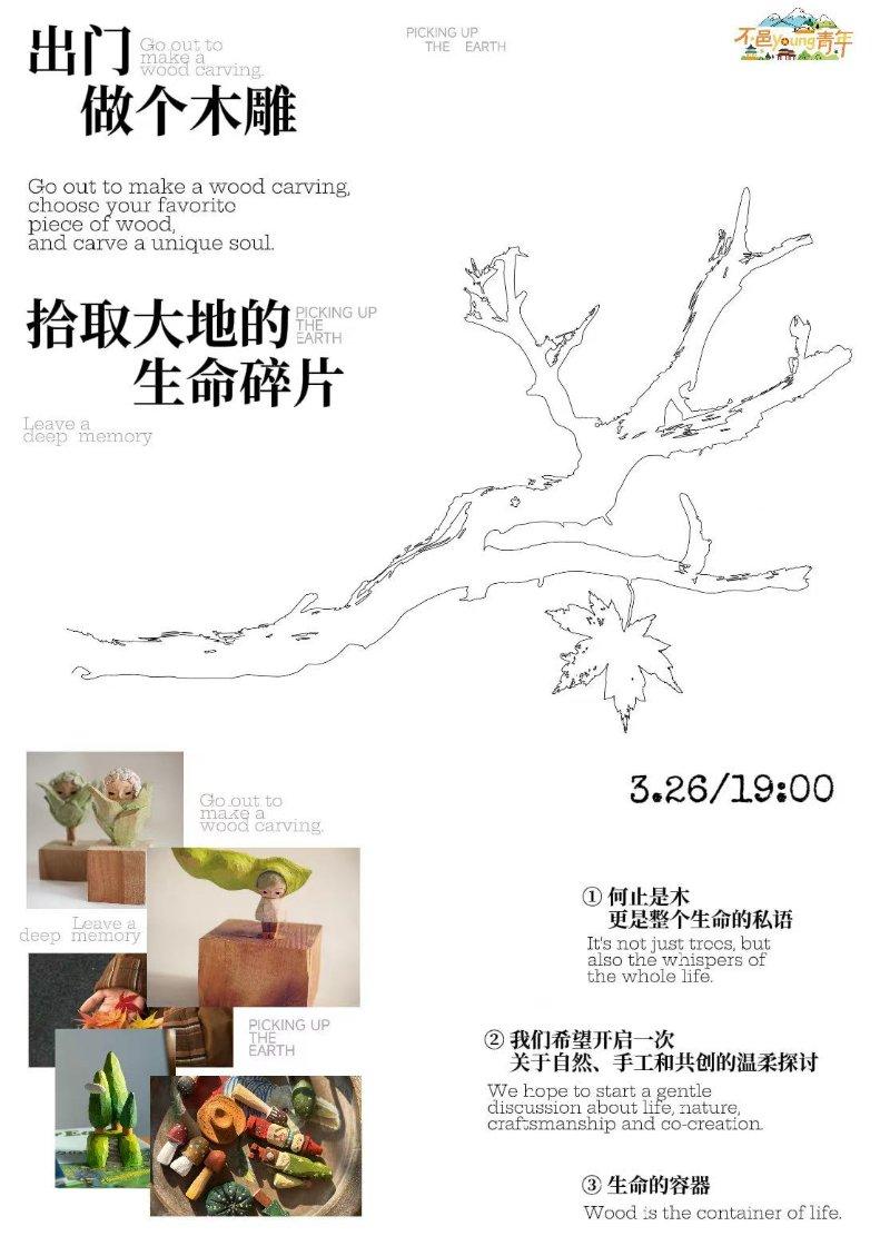 和木雕达人一起。选一块木头,刻一个灵魂。木纹里藏着生命的私语,我们用双手与自然共创温柔记忆。3月26日,带上好奇心,来青年之家雕刻你的春天 。(注:此活动与压花画活动只可报名一个,二选一参加)