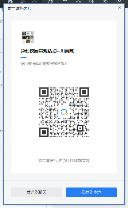 欢迎各位小伙伴参与由蓉创志愿服务队组织开展的"0511四川商务职业学院文家校区环保徒步校园无烟头志愿服务"(此活动仅限本高校学生报名),当您报名此活动后,请确保您已加入下述群聊,为便于联系,请将群昵称更改为所属系部+姓名+电话,谢谢。