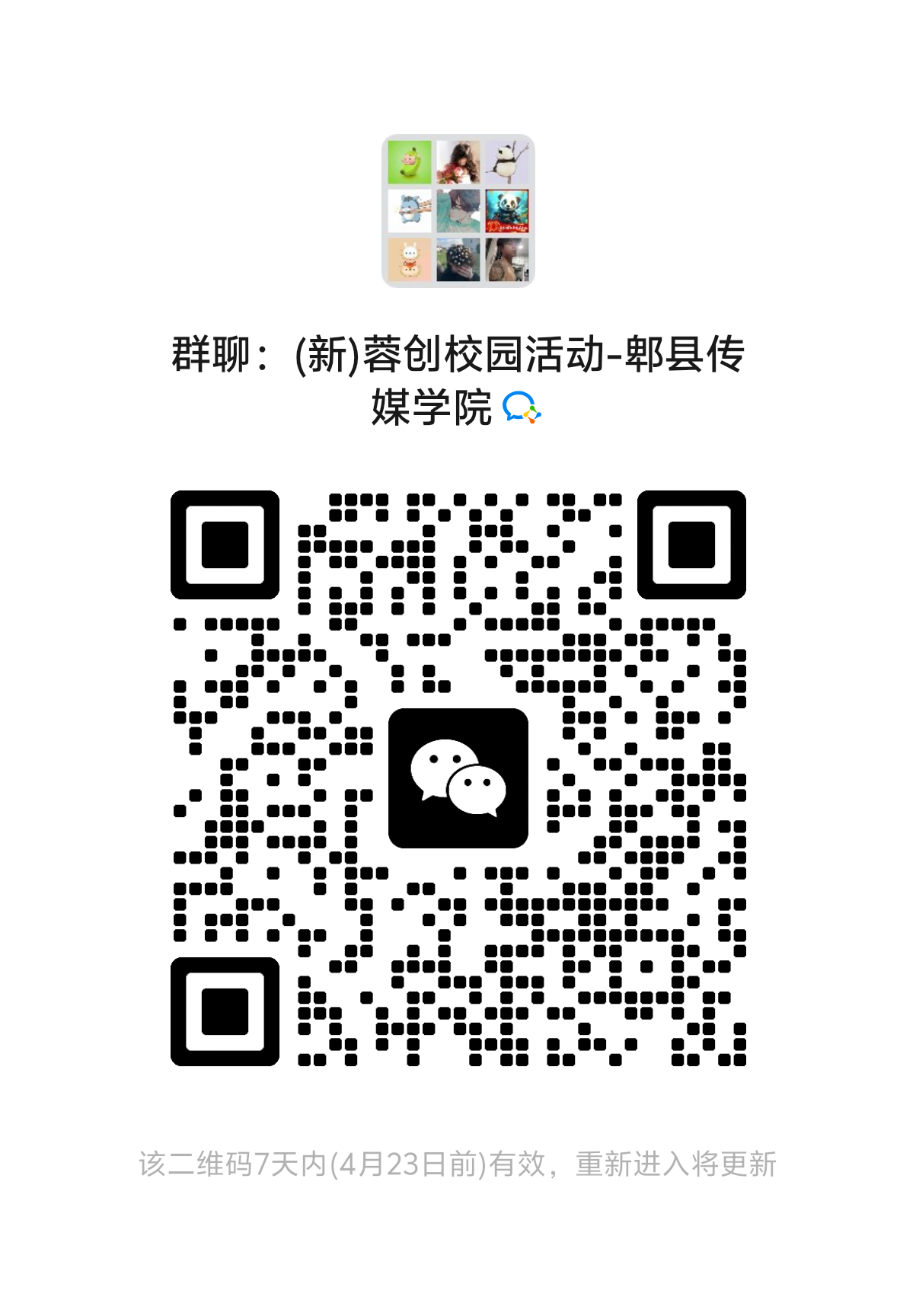 1.报名后,请扫码进群,如未进群将为其退报。进群后请修改备注为所在二级学院/系部+姓名+电话,如未按照要求修改备注将被移除群聊且退报项目