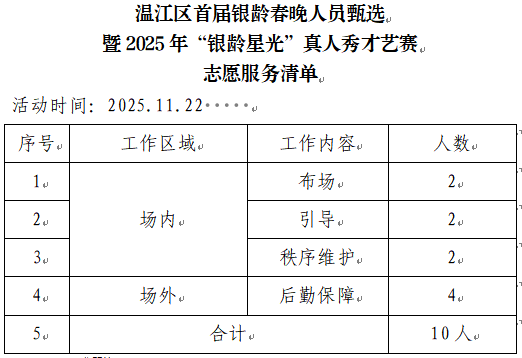 2025-11-22 【青春志愿·幸福成都】温江区首届银龄春晚演员甄选活动秩序维护志愿服务
