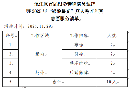 2025-11-29 【青春志愿·幸福成都】温江区首届银龄春晚演员甄选活动秩序维护志愿服务